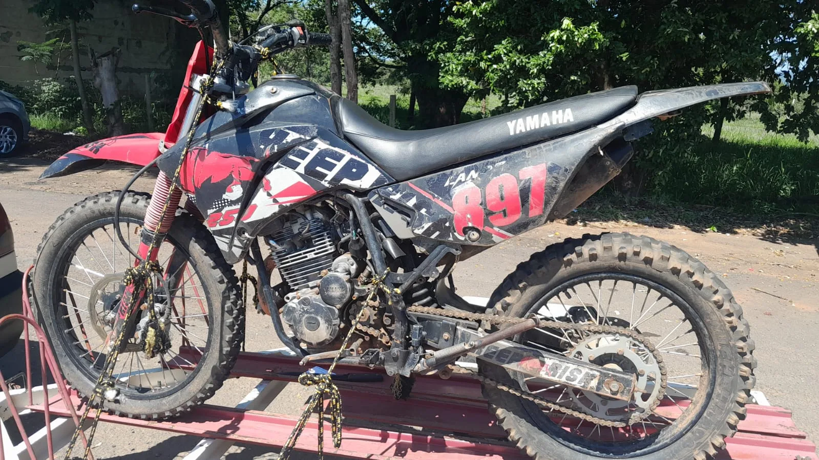 Segundo a Polícia, foi realizada uma abordagem a um VW Gol que tracionava uma carretinha com uma motocicleta. O veículo estava com a numeração suprimida do chassi e do motor.