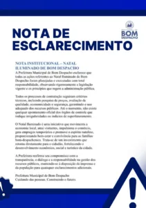 Contudo, nessa semana, a Prefeitura de Bom Despacho emitiu uma Nota de Esclarecimento, que informa que todos os custos foram baseados em estudos técnicos como pesquisa de preço e avaliação de qualidade, sendo para seguir para legislação vigente. O Executivo também diz que a iniciativa também valoriza a cultura local nesta época e fomenta a economia local como criação de empregos temporários e atrai visitantes de outras cidades do estado.